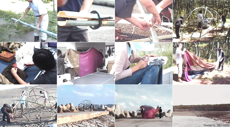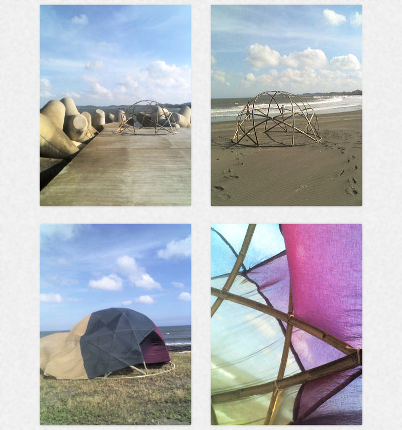 スタードームというストラクチャ(構造、建造物)を、竹と麻ヒモと生地で作って、いろいろなところに持って行って、また動かして・・・という試み。