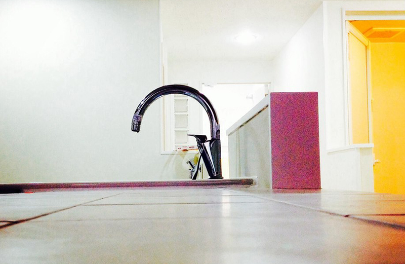 街の中心部で空室の多くなっている、古い事務所ビルの一部をアトリエ兼住宅に改造しました。