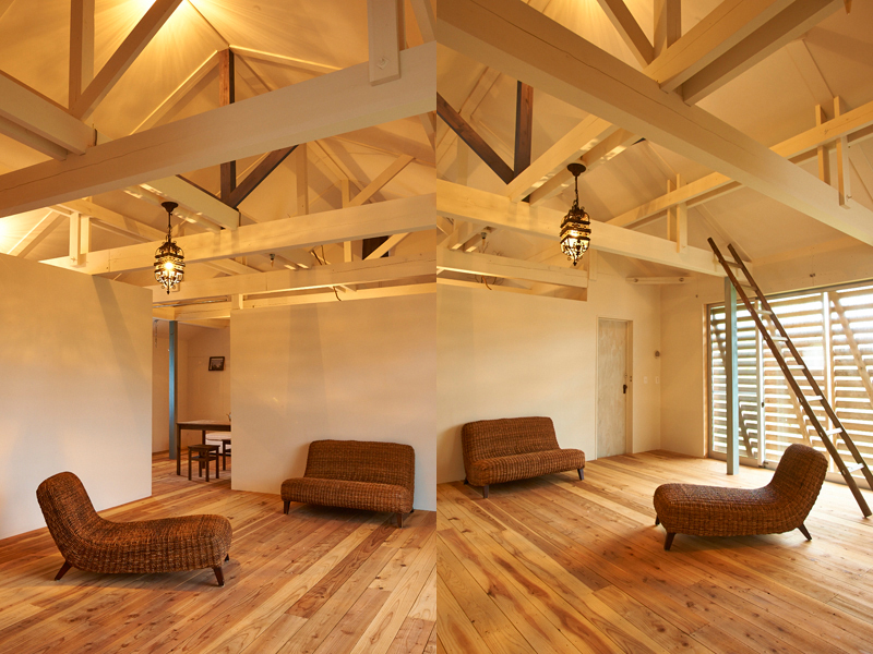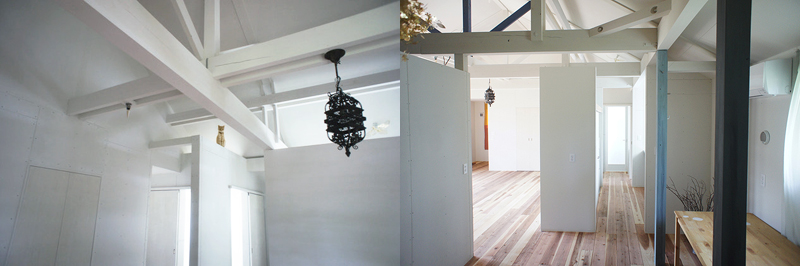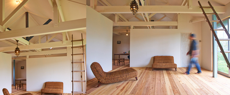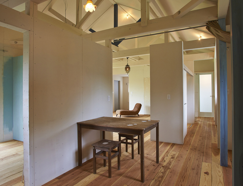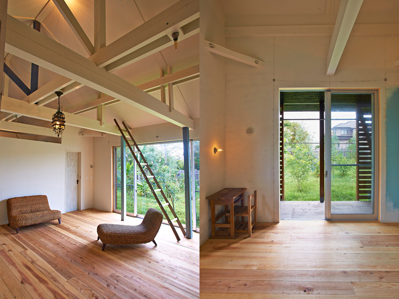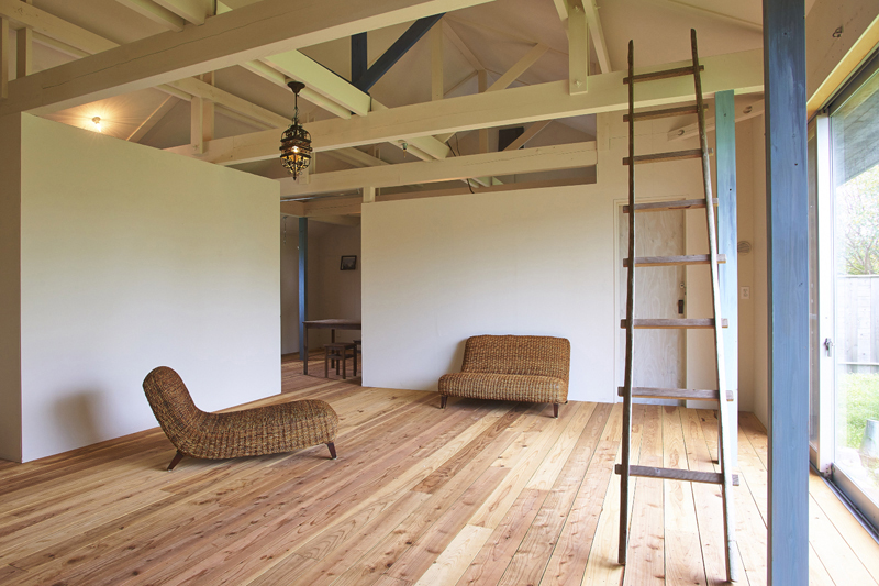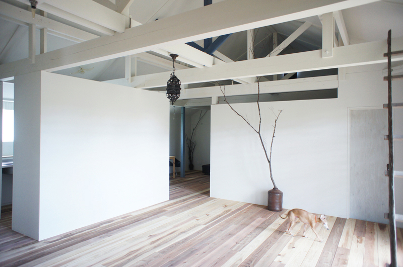 郊外で、人と犬・猫・鳥・魚・亀・植物と暮らす、アーティストのアトリエ兼自宅